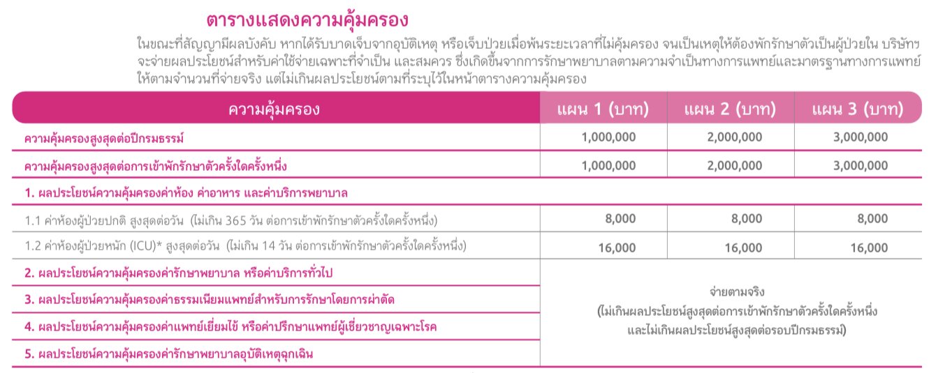 1. ผลประโยชน์ความคุ้มครองค่าห้อง ค่าอาหาร และค่าบริการพยาบาล