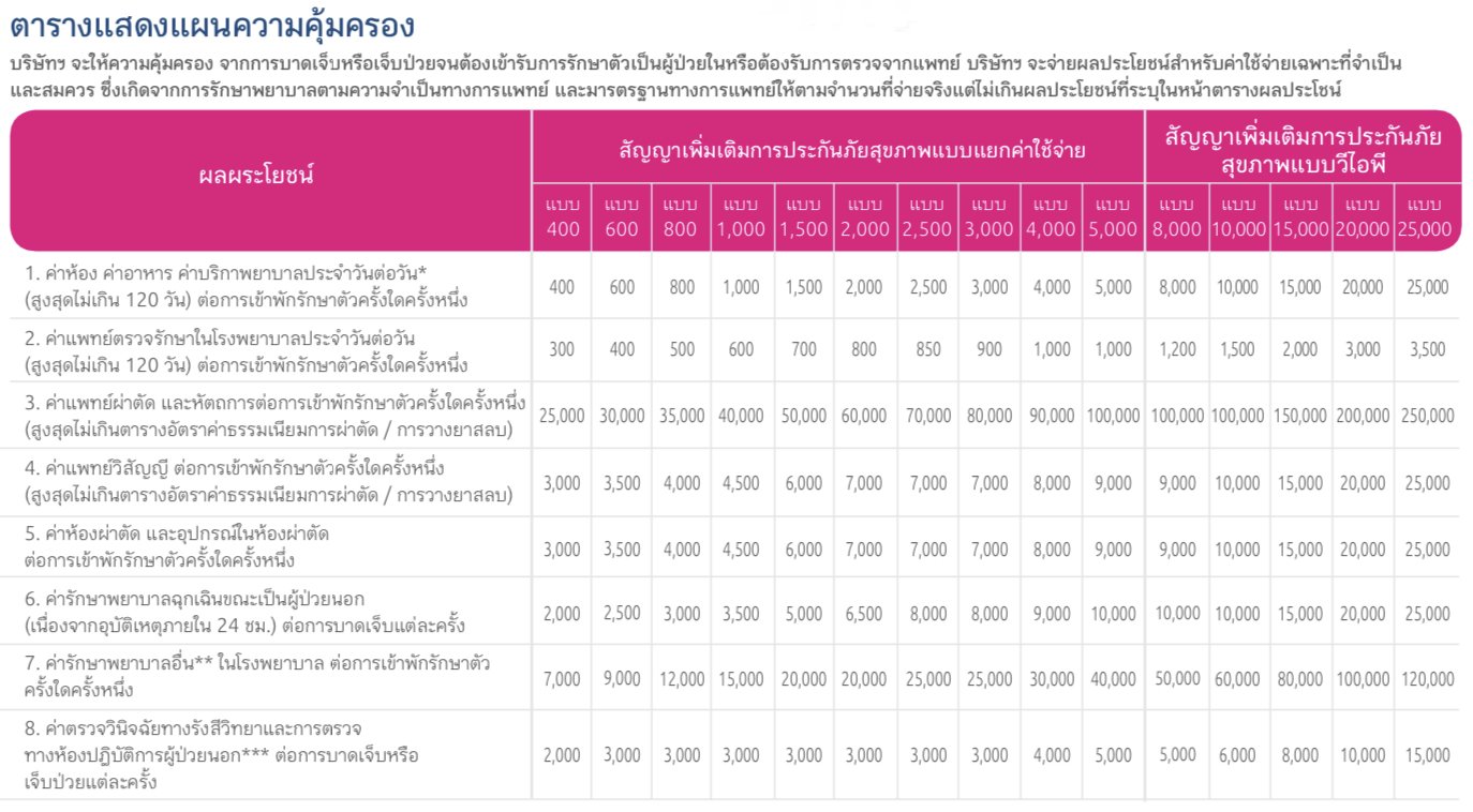สัญญาเพิ่มเติมการประกันสุขภาพแบบแยกค่าใช้จ่าย และแบบวีไอพี