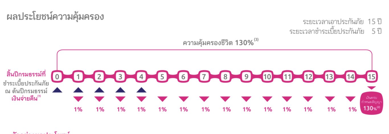 ถ้าผู้เอาประกันภัยเสียชีวิต บริษัทจะจ่ายเงินให้แก่ผู้รับประโยชน์เท่ากับร้อยละ 130 ของจำนวน