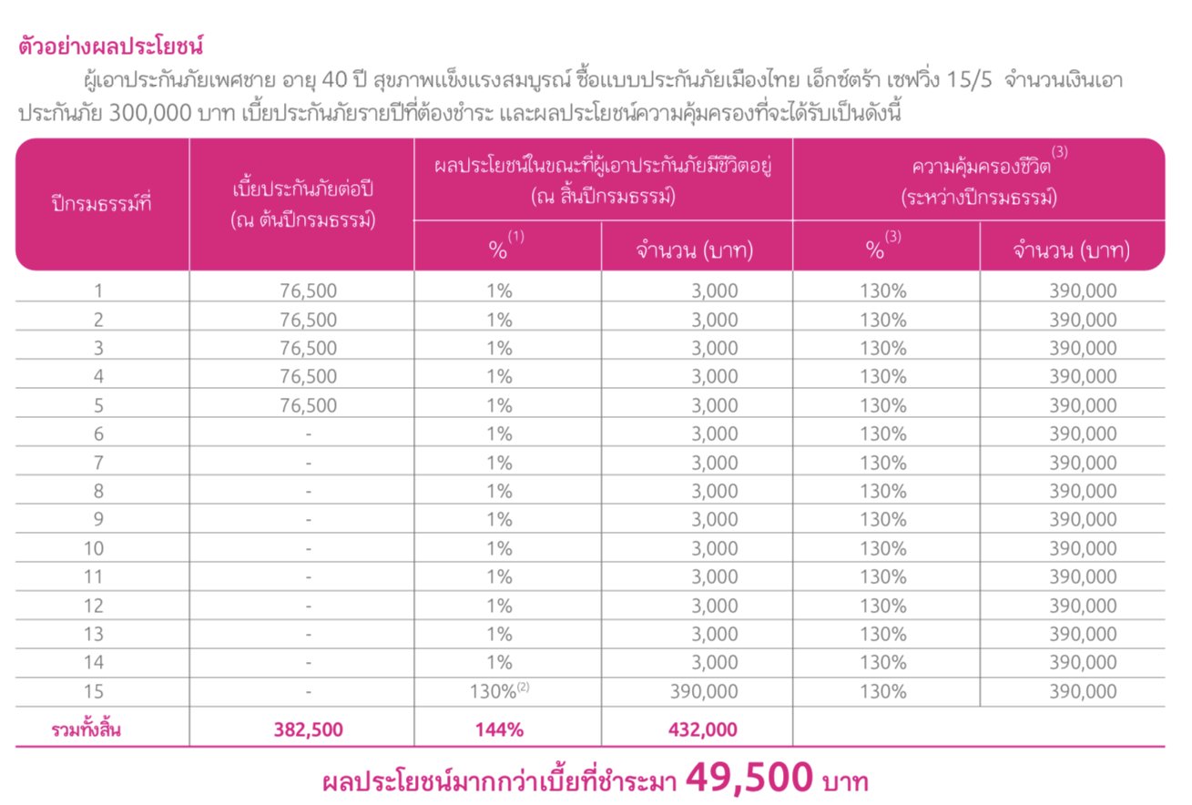ผลประโยชน์ความคุ้มครอง เอ็กตร้า เซฟวิ่ง 15/5