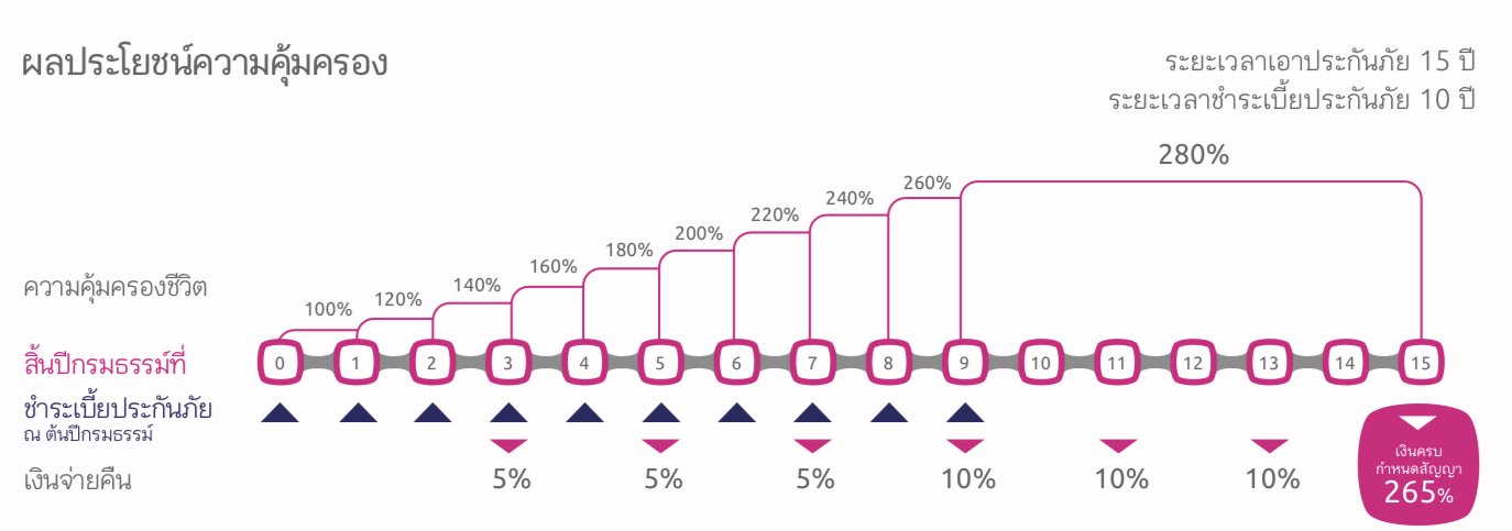 ให้อนาคตทางการเงินของคุณ เป็นเรื่องง่ายๆ ออมเงินเพียง 10 ปี เงินครบกำหนดสัญญา 265% และยังได้รับความคุ้มครองชีวิตสูงถึง 280%