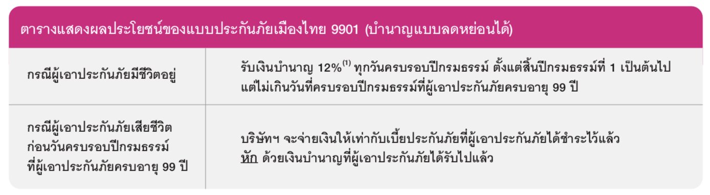เมืองไทย 9901 (บำนาญลดหย่อน 2 แสนหลังได้)